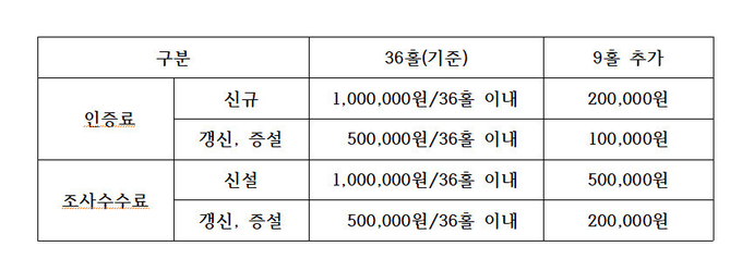 공인 파크골프장 인증 비용은 절차의 복잡성, 시설 점검, 심사 인력 투입 등에 따라 책정된다. 조사 수수료와 인증료를 합산하여 기한 내에 납부해야 한다.